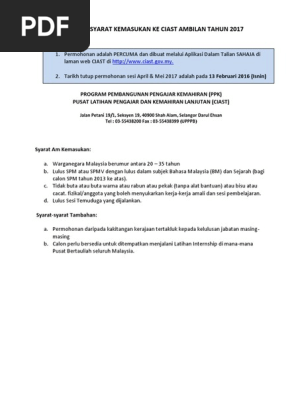 Panduan Syarat Kemasukan Ke Ciast Ambilan Tahun 2017 Unit Pengurusan Pembangunan Pengajar Baru Upppb