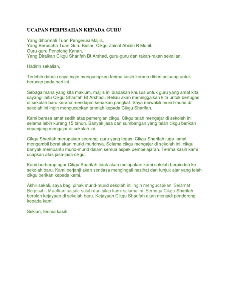 Doc Contoh Ucapan Wakil Murid Untuk Majlis Persaraan Linda Husin Academia Edu