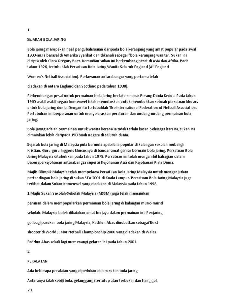 Sejarah Bola Jaring Dan Maklumat2