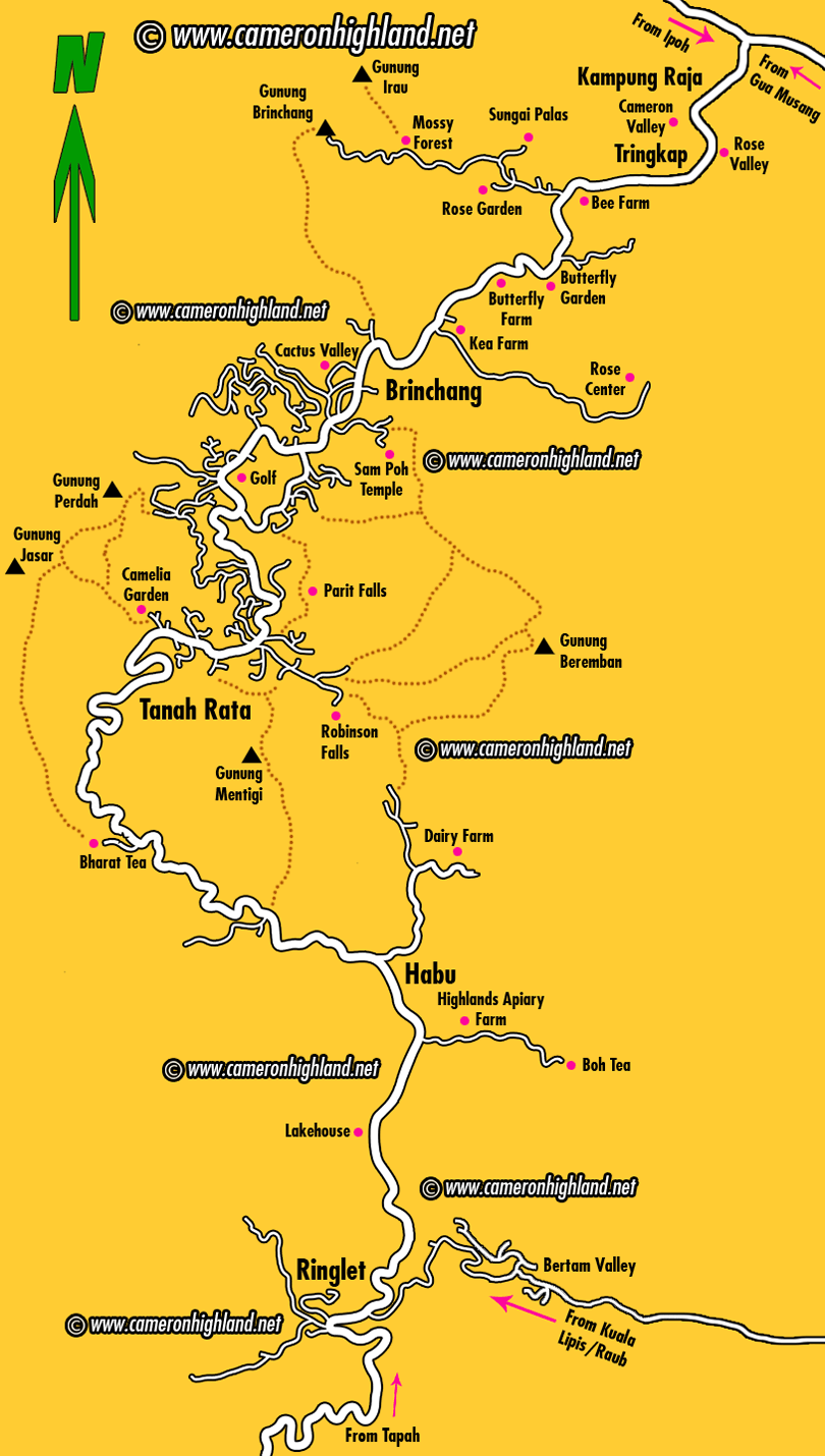 Cameron Service Mountain Tour Travel Sdn Bhd 31 Map Of Cameron Highlands Tanah Rata Brinchang Kea Farm Towns Cameron Servise
