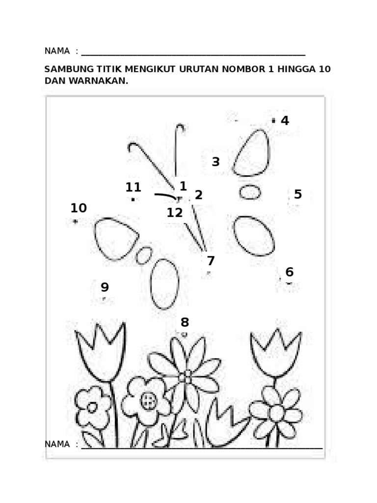 Lembaran Kerja Sambung Titik Nombor 1 Hingga 10