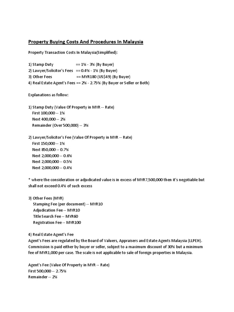 Property Buying Costs And Procedures In Malaysia Fee Real Estate Broker